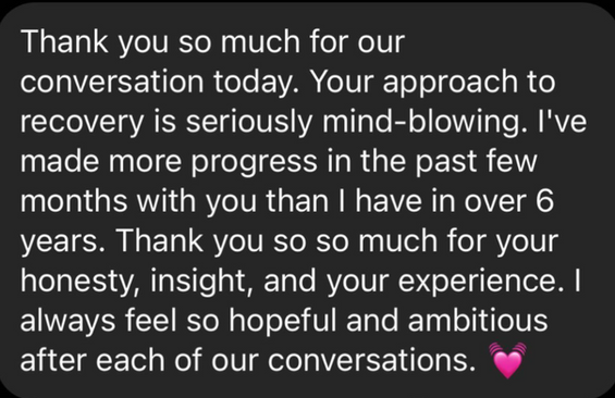 I reverse engineered my whole recovery to create an inspiring curriculum that involves recovery education, somatic processes, visualization tools, body image resets, feminine energy activations, and tip/tricks to release anxiety + fear that will offer you big mental/emotional/physical shifts (we need all 3 for recovery to be permanent).